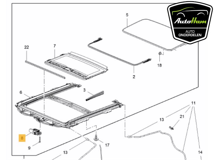 Damit ich feststellen kann, wohin das Teil gehört und ob die Funktion durch das Fehlen beeinträchtigt ist, würde ich das gerne mit einer Explosionszeichnung der Schiebedach‑Komponenten vergleichen. Das gegenständliche Teil im Bild ist 8 cm lang.